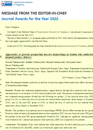 ●中林靖医師が日本妊娠高血圧学会で2024ジャーナル賞を受賞しました